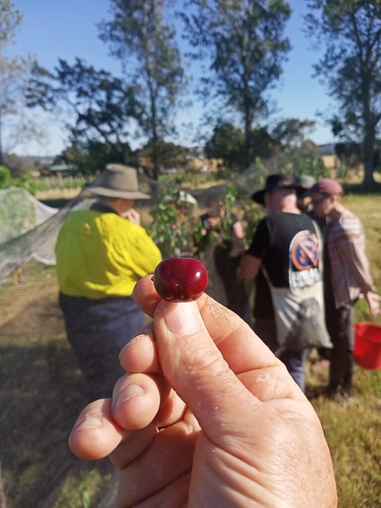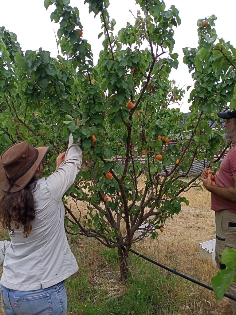 Fruit Crew is our skills exchange program where our fabulous vollies get a fruit allowance, fruit-based cakes at break time, and fruit tree lessons on a huge range of topics, from fertigation to bud-grafting, in exchange for assisting with a variety of farm jobs.