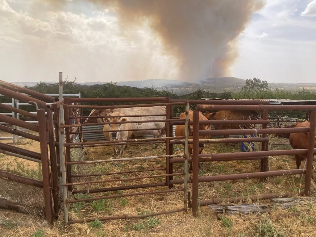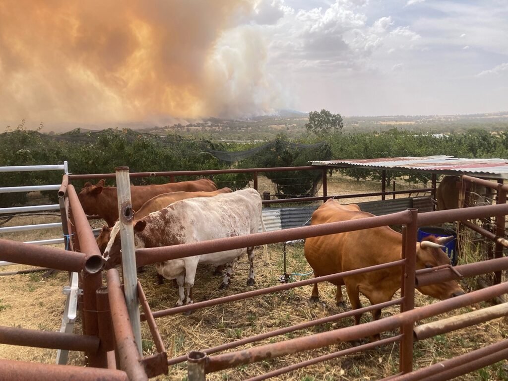 Throughout all this, the cows were amazing. They remained calm, ruminating in the yards. On our second night of fire threat, Tess managed to get every cow on the farm into the yards.